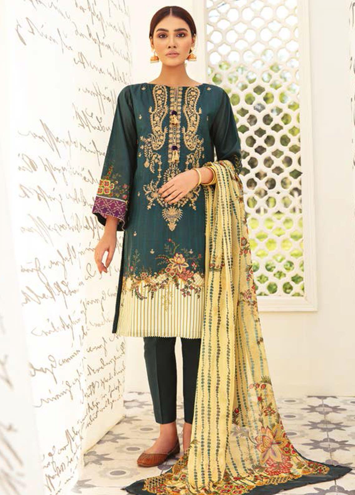 2.5 DYED FULLY EMB JACQUARD SHIRT  2.5 DIGITAL PRINTED CHIFFON DUPATTA 1.75 DYED CAMBRC PANTS