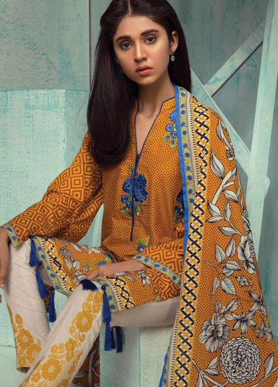 3 Piece Embroidered Lawn Suit Lawn Shirt (Wider Width) Lawn Back and Sleeves (Wider Width) Lawn Dupatta...