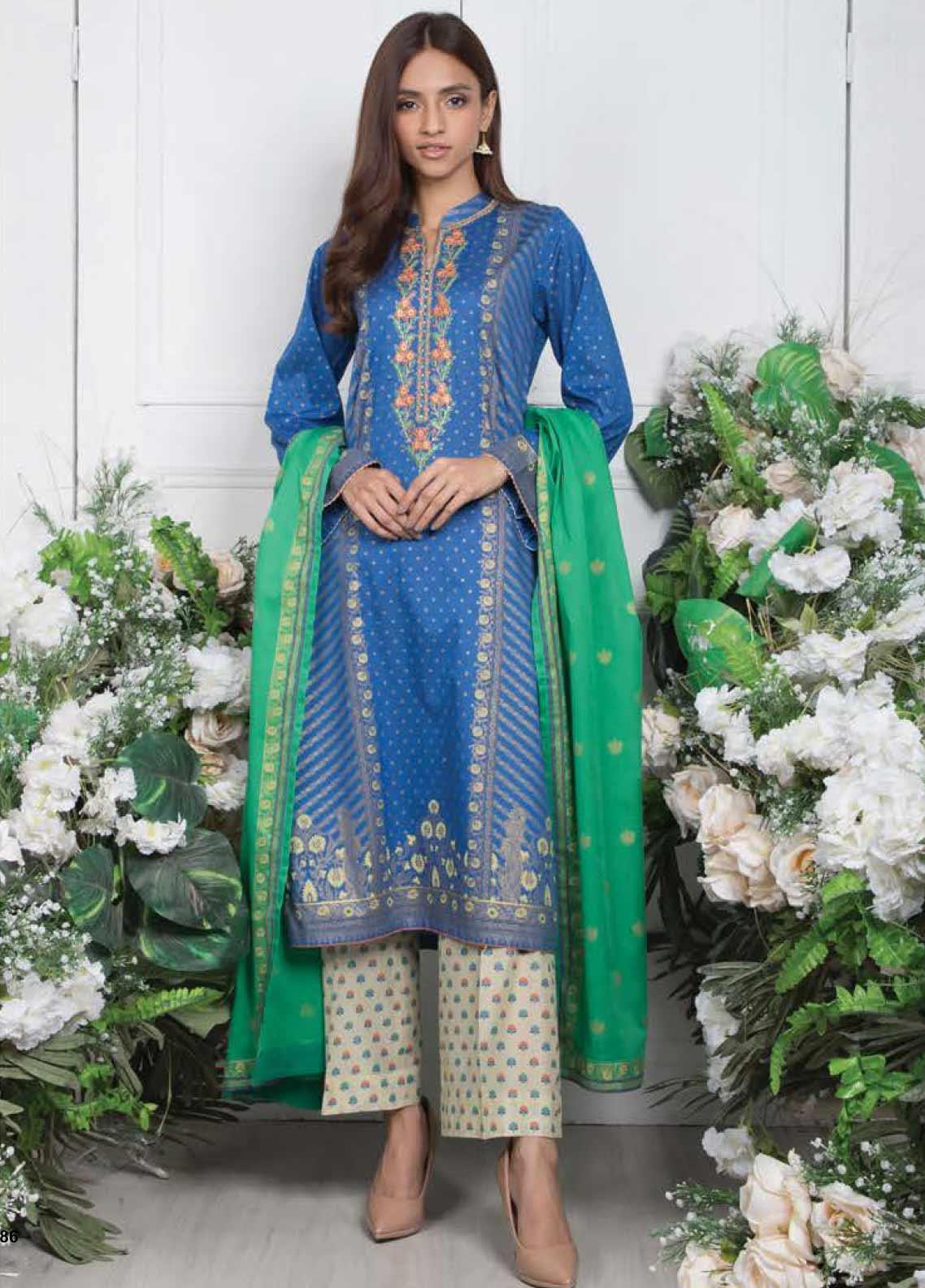 3 Piece Embroidered Lawn Suit Lawn Pearl Printed Shirt Lawn Pearl Printed Dupatta Cambric Printed Pants Embroidered...