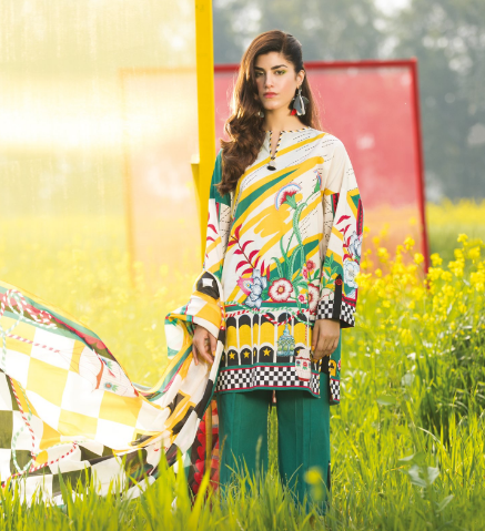 2PC Digital Printed Textured Lawn Shirt Digital Printed Fine Voile Dupatta