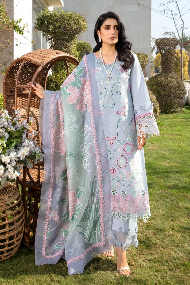 Embroidered shirt sleeve border on dyed organza 45 inch