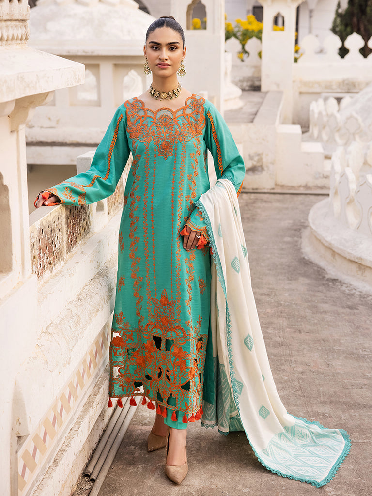 Embroidered Khaddar FrontEmbroidered Khaddar Sleeves BorderDyed Khaddar Back & SleevesDyed Khaddar TrouserPremium Jacquard ShawlEmbroidered Cutwork Hem BorderEmbroidered...
