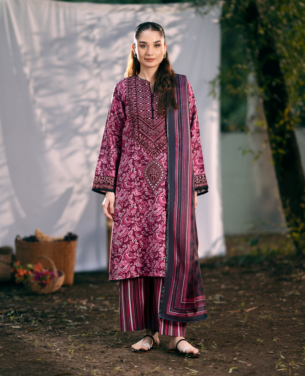 Product Details: PRINTED VISCOSE SHIRT EMBROIDERED NECK PATCH EMBROIDERED SLEEVES PATCH PRINTED SILK DUPATTA PRINTED VISCOSE TROUSER...
