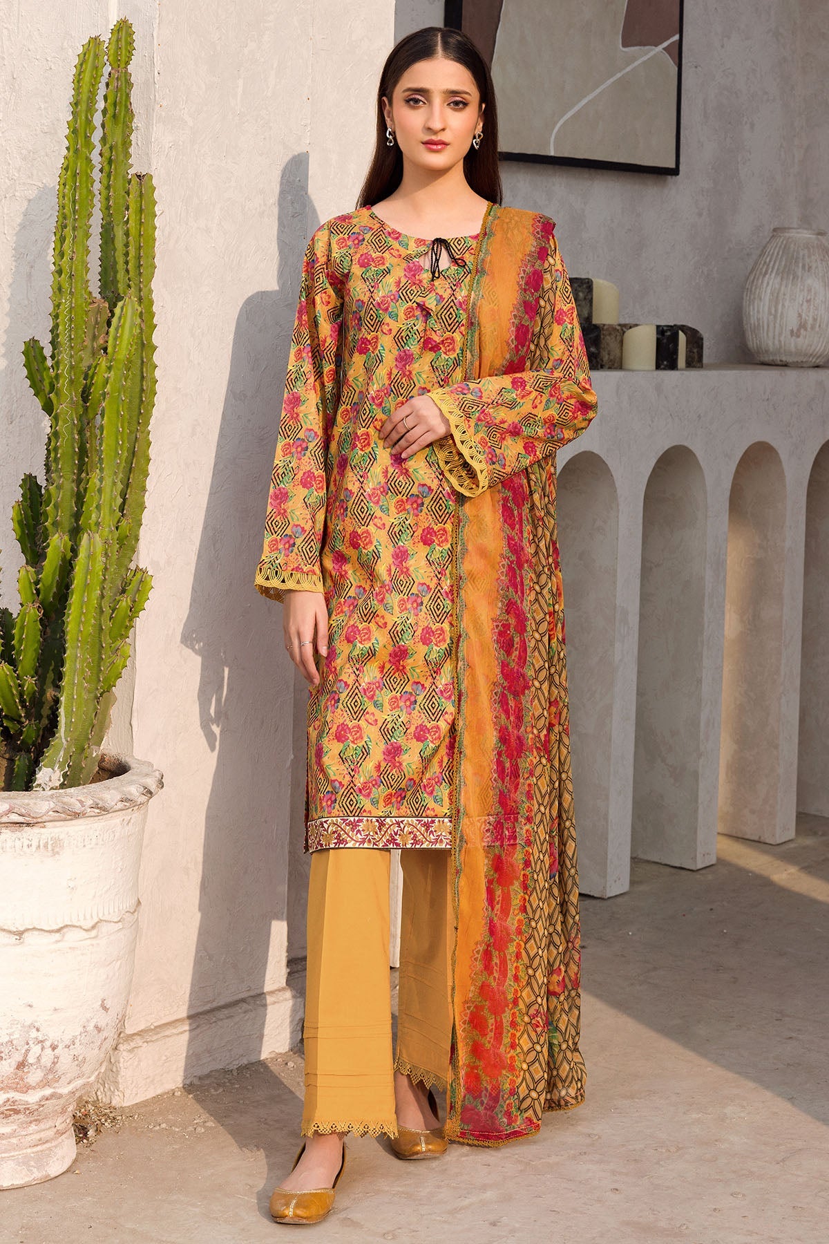 Digital Printed Lawn Shirt 2.75 MDigital Printed Crinkle Chiffon Dupatta 2.5 MDyed Cotton Trouser 2.5 M