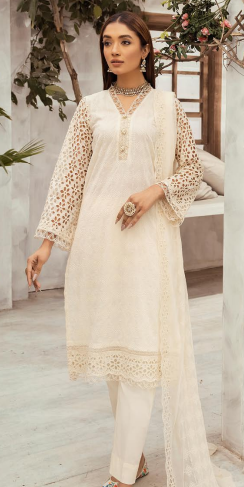 Embroidered Chikankari Lawn Collection with Embroidered Cutwork Chiffon Dupattas