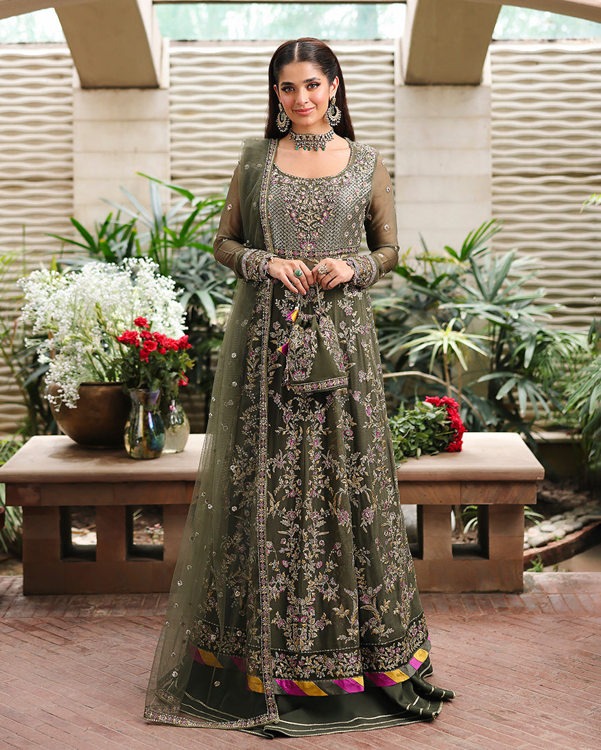Embroidered, sequinned and hand embellished front yoke (Chiffon)