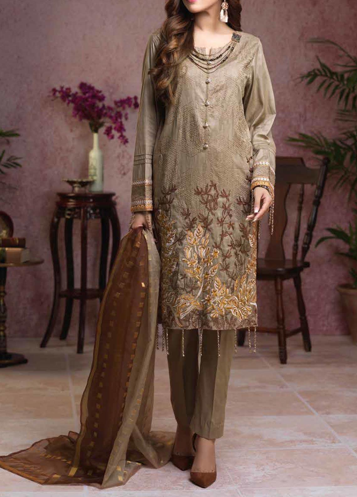 3 Piece Embroidered Broschia Suit