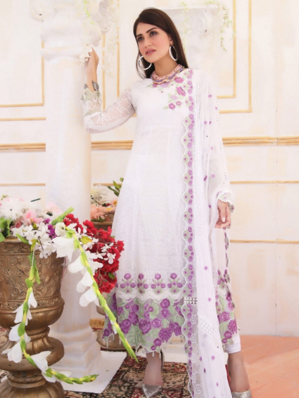 EMB CHIFFON FRONT EMB CHIFFON BACK  EMB CHIFFON SLVEES  EMB CHIFFON DUPATTA EMB BORDERS  GRIP TROUSERS