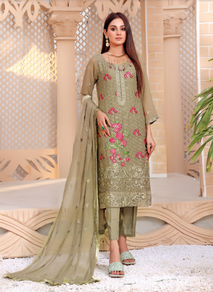 Front : Embroidered Chiffon Back : Embroidered Chiffon Sleeves : Embroidered Chiffon Duppta : Embroidered Chiffon Trouser...
