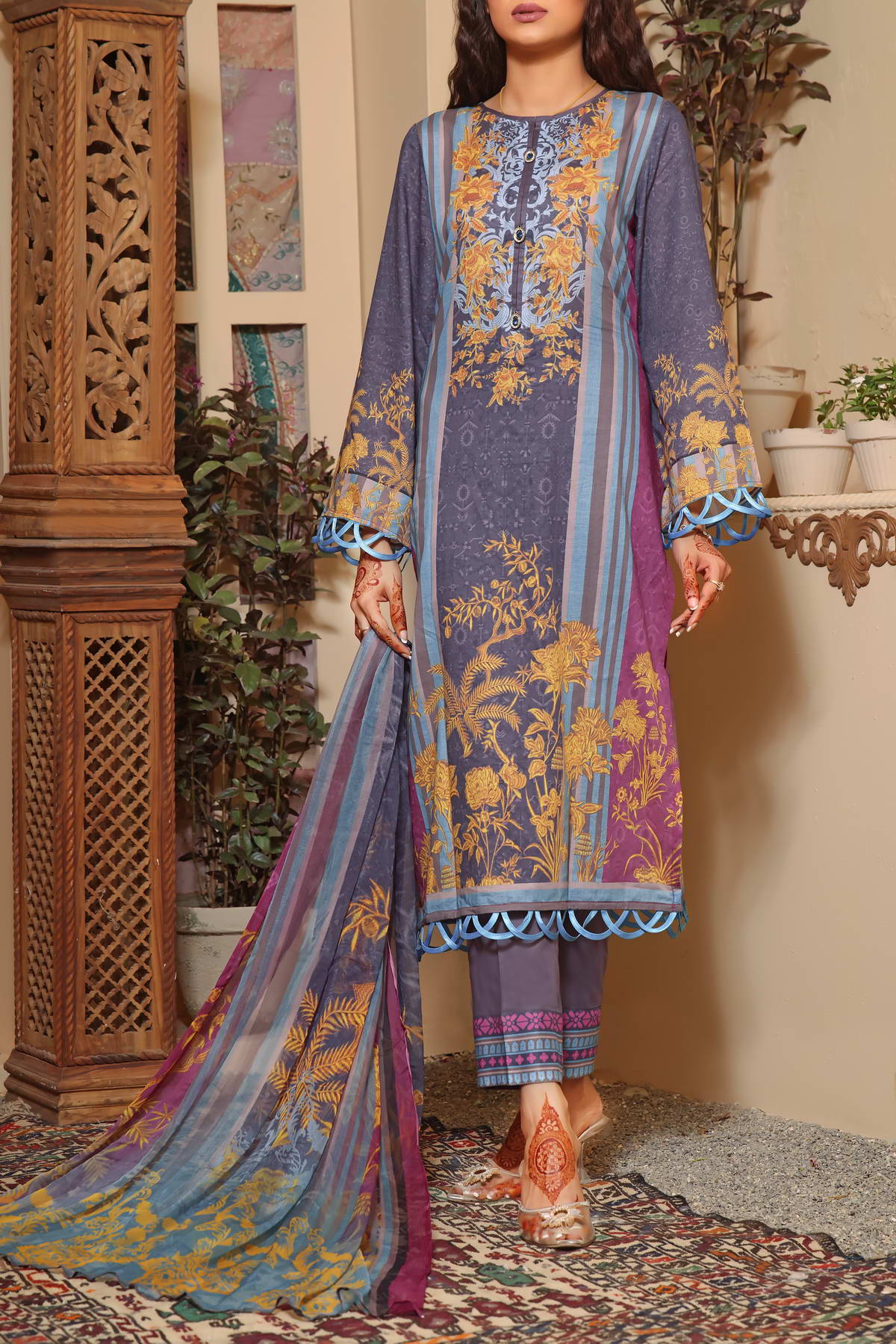 Printed Digital Airjet Lawn Shirt. Digital Printed Chiffon Dupatta . Dyed Trouser.