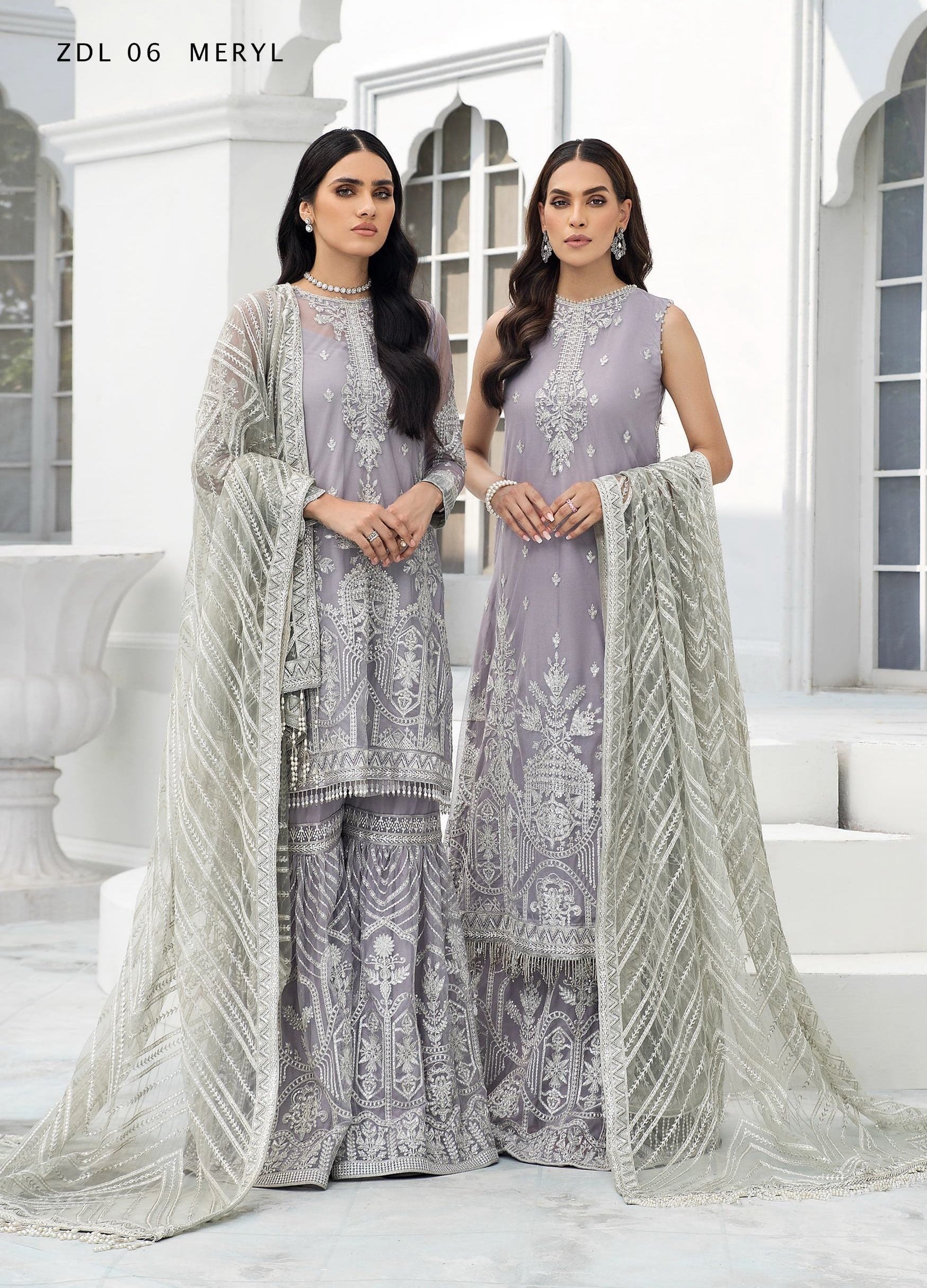 Embroidered Net 3 Piece Shirt Front Sequins Embroidered Net Shirt Back Sequins Embroidered Net Sleeves Sequins Embroidered...