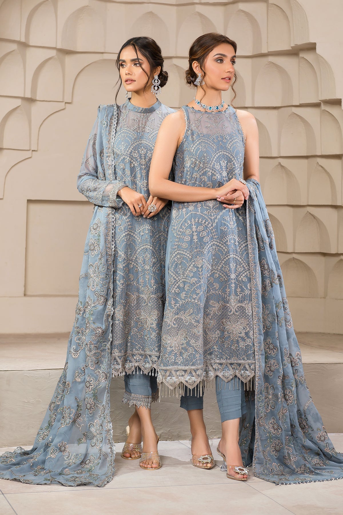 Embroidered 3 Piece Suit Shirt Front Sequins Embroidered Chiffon Shirt Back Sequins Embroidered Chiffon Sleeves Sequins Embroidered...