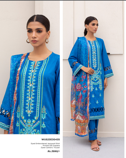 Dyed Emb Jacquard Shirt Printed Silk Duppta  Dyed Cambric Shalwar