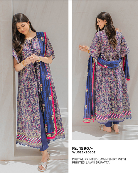 DIGITAL PRNITED LAWN SHIRTWITH PRNITED LAWN DUPATTA
