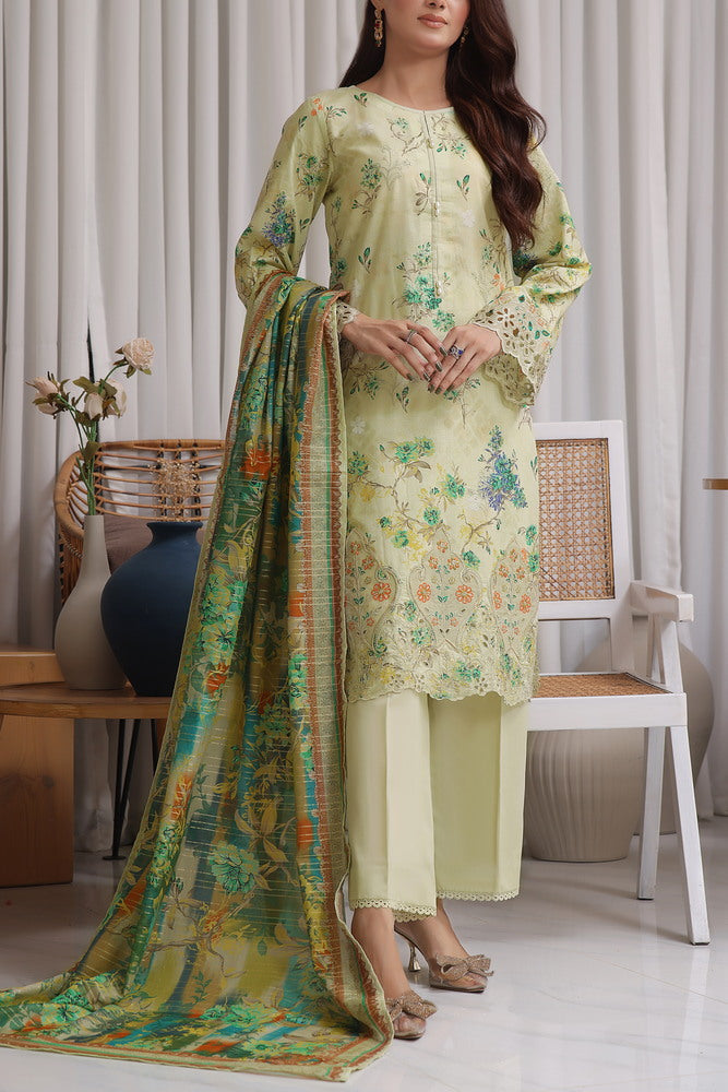 DESCRIPTION: TOP QUALITY THREE PIECE UNSTITCHED PRINTED DRESS WITH CHIKANKARI DAMAN Printed Lawn Shirt With Chikankari Daman....