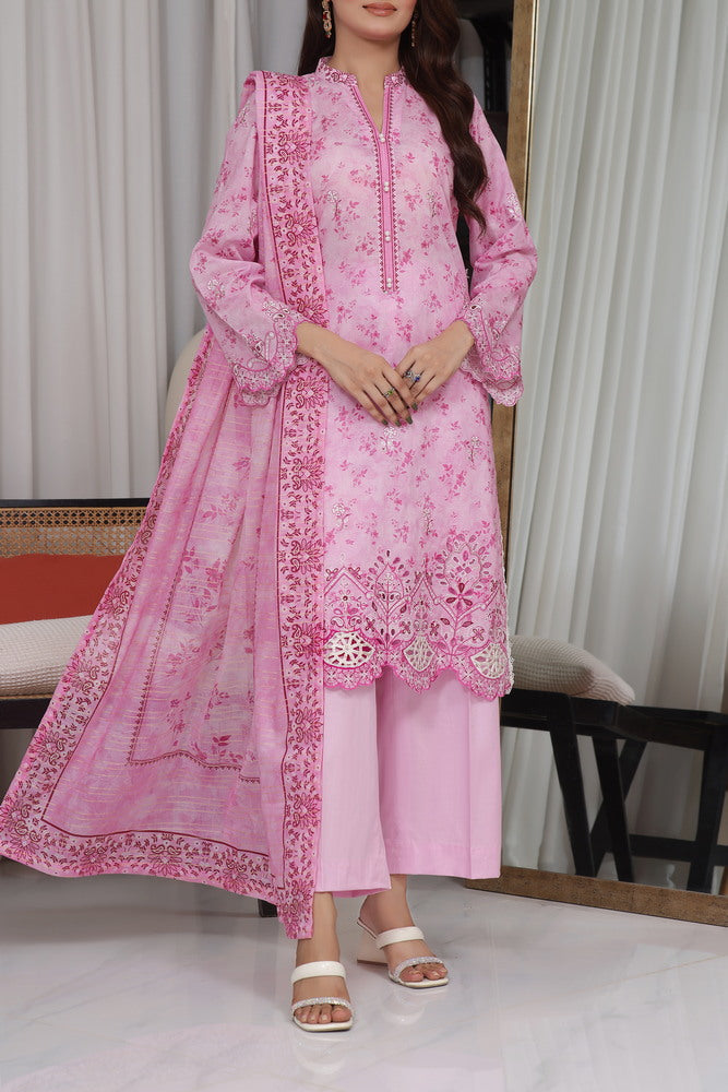 DESCRIPTION: TOP QUALITY THREE PIECE UNSTITCHED PRINTED DRESS WITH CHIKANKARI DAMAN Printed Lawn Shirt With Chikankari Daman....
