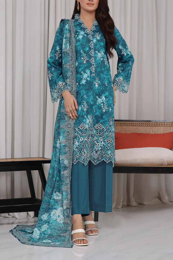 DESCRIPTION: TOP QUALITY THREE PIECE UNSTITCHED PRINTED DRESS WITH CHIKANKARI DAMAN Printed Lawn Shirt With Chikankari Daman....